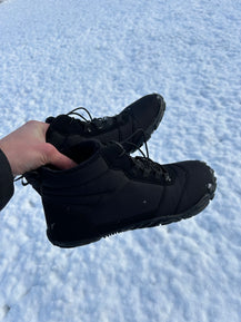 Le design intérieur spécialement conçu pour les chaussures pieds nus, doté d'une large boîte à orteils , procure non seulement à votre pied l'espace nécessaire et épouse parfaitement la forme de votre pied, mais il met également fin aux pieds douloureux, garantissant ainsi que vos promenades hivernales soient soient un moment de pur confort et de joie. .